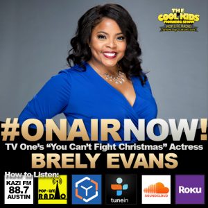 The Cool Kids Morning Radio Show Interview TV One “You Can’t Fight Christmas” Actress, Brely Evans. – www.popliferadio.com How To Listen: 1. WATB 1420AM Tuesday morning at 10am EST 2. KAZI 88.7FM Wednesday morning at 1am EST 3. Smartphone app @Tunein just visit bit.ly/poplife-tunein 4. Dial-in from ANY cellphone or landline…641-552-5890 5. From our website at popliferadio.com _______________________ …