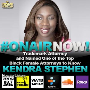 Eliott Interviews Trademark Attorney & Named 1 of Top 10 Black Female Attorneys to Know, Kendra Stephen. – www.popliferadio.com   _______________________ The Harmony & Zione Morning Show interview Trademark Attorney, @KendraStephen Tuesday January 8th at 10am EST on Pop.Life.Radio KAZI 88.7FM & WATB 1420AM Tune-in & Listen! Shout out to #PopLife Staffer @ElliottGrenier14, he’s getting everything you need to know about #trademarks for …